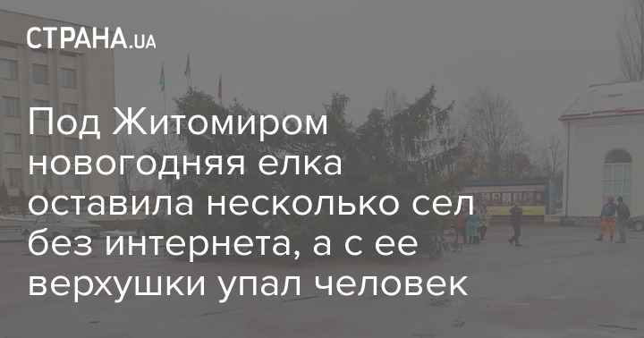 В поселке под Житомиром рухнула новогодняя елка, которую устанавливали на центральной площади. Инцидент произошел в пгт Романов. Новогоднее дерево поломалось пополам в то время, как на его верхушке работал арборист.