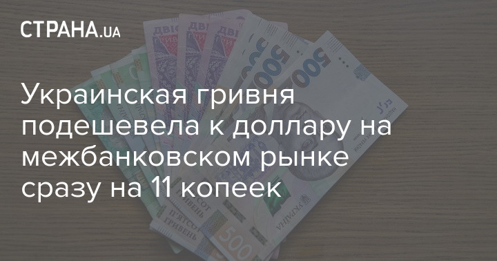 Украинская гривня подешевела к доллару на межбанковском рынке сразу на 11 копеек