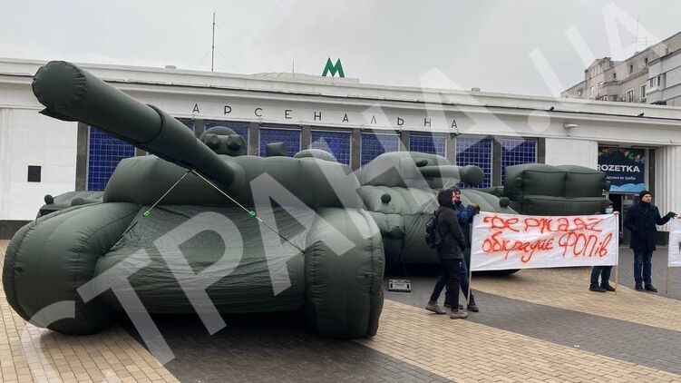 "Страна" узнала, зачем у метро "Арсенальная" в Киеве поставили надувные танки