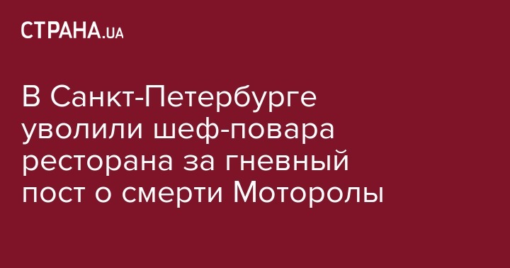 В Санкт-Петербурге шеф-повар ресторана "C1tizen" Григорий Пашукевич отстался без работы после того, как написал на своей странице в Facebook негативный пост про убитого в Донецке командира "ДНР" Арсения Павлова (известного как Моторола). Об этом говорится на странице заведения Вконтакте