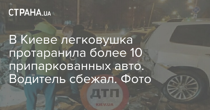 В Киеве легковушка протаранила более 10 припаркованных авто. Водитель сбежал. Фото