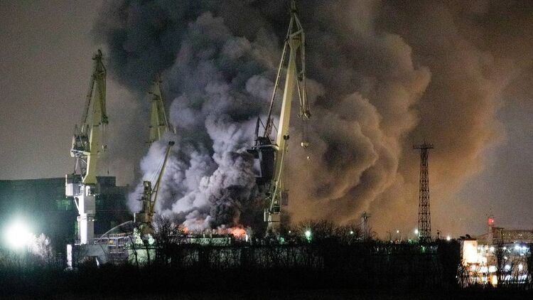 В Санкт-Петербурге потушили пожар, возникший на строящемся военном корабле "Проворный" на заводе "Северная верфь".