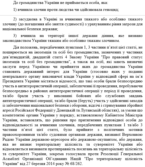 В-четвертых, если "упрощенец", служивший в АТО или имевший заслуги перед Украиной, был на родине осужден за тяжкие преступления или геноцид, то Кабмин Украины может признать эти приговоры политически мотивированными - и принять иностранца гражданство.
