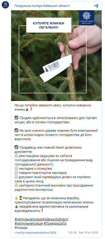 Патрульная полиция Киевской области рассказала о том, на что нужно обращать внимание при покупке новогодней елки.