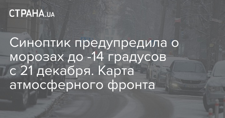 Синоптик предупредила о морозах до -14 градусов с 21 декабря. Карта атмосферного фронта