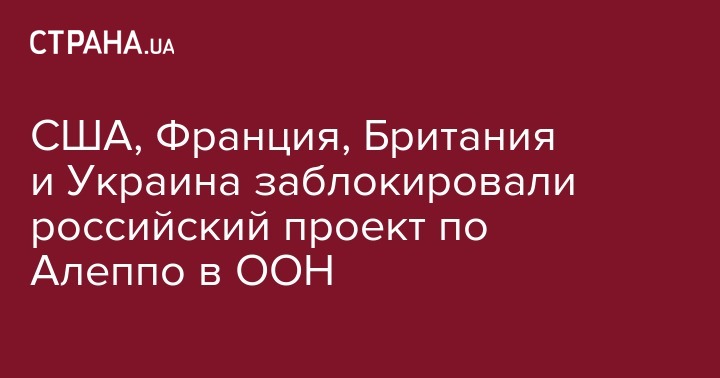 Украина, Франция, Великобритания и США заблокировали в СБ ООН российский проект заявления по гуманитарной паузе в Алеппо. Об этом сообщает Интерфакс-Украина.
