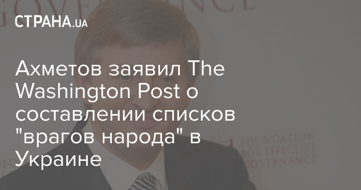 Ахметов заявил The Washington Post о составлении списков "врагов народа" в Украине