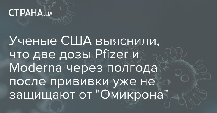 Американские ученые заявили, что две дозы вакцин от коронавируса компаний Pfizer и Moderna не обеспечивают защиту от штамма "Омикрон" спустя полгода после второй прививки.