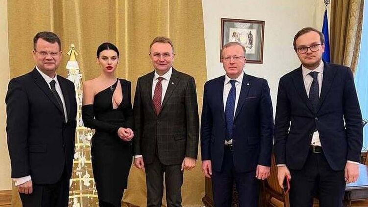 Мэр Львова Андрей Садовой сфотографировался в мэрии с девушкой в откровенном наряде. В сети уже успели высмеять ее платье с открытым декольте.