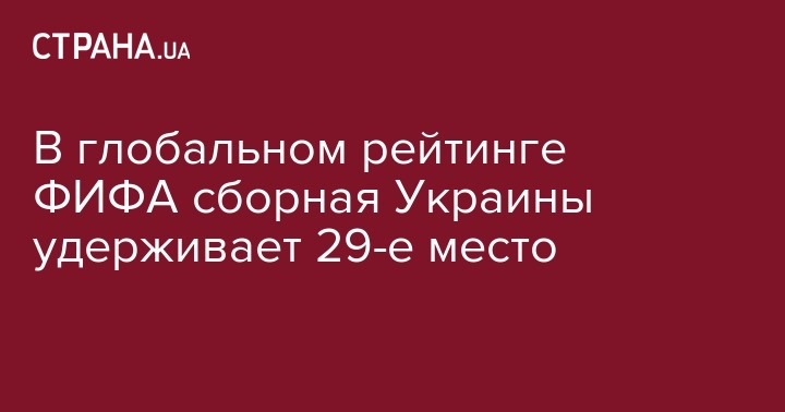 Национальная сборная Украины по футболу остается на 29 месте в рейтинге ФИФА, сообщает официальный сайт организации.
