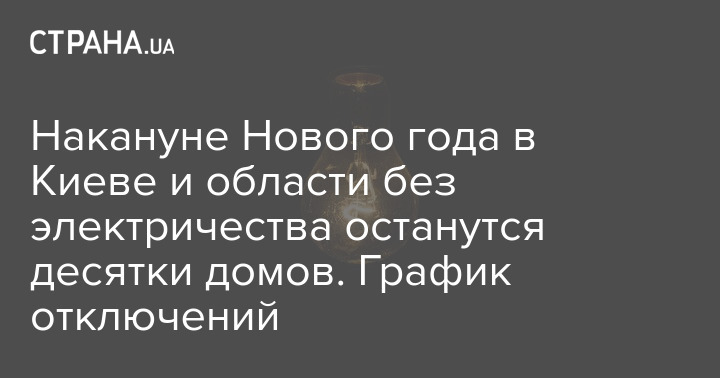 Накануне Нового года с 28 по 31 декабря в Киеве и в Киевской области пройдут массовые отключения электричества.