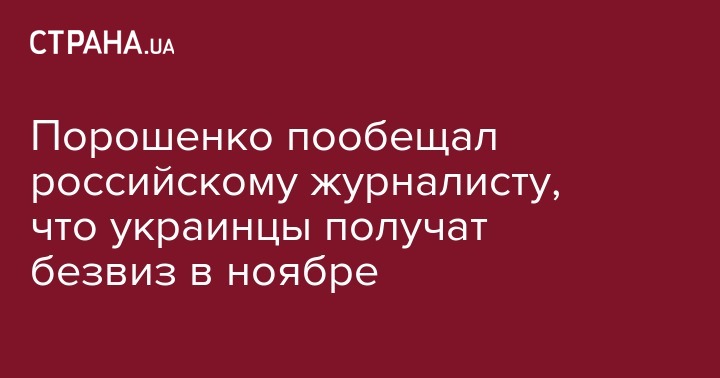 Порошенко пообещал российскому журналисту, что украинцы получат безвиз в ноябре