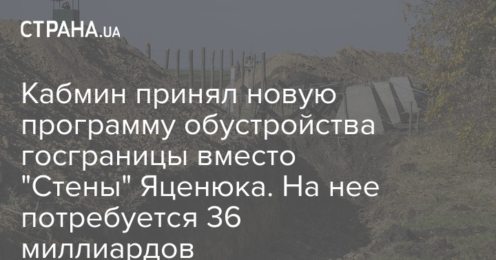 Правительство утвердило на ближайшие пять лет новую программу по обустройству границы с Россией и Беларусью, которая заменит знаменитый "европейский вал", или "Стену", инициированную в 2014 году Арсением Яценюком. Эта программа подразумевает финансирование в размере 36,3 миллиардов гривен.