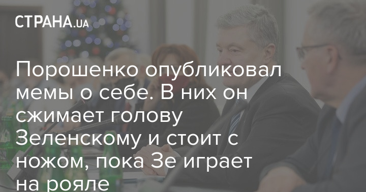 Порошенко опубликовал мемы о себе. В них он сжимает голову Зеленскому и стоит с ножом, пока Зе играет на рояле