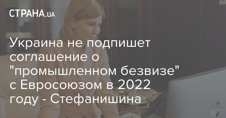 Вице-премьер-министр по вопросам европейской и евроатлантической интеграции Украины Ольга Стефанишина заявила, что соглашение о "промышленном безвизе" с Евросоюзом не будет подписано в этом году.