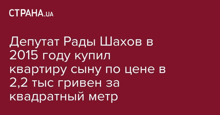 По информации "Украинской Правды", квартира была куплена и в собственности сына депутата Никиты Шахова также находится вторая в Киеве площадью 166,9 кв. м стоимостью 1,067 млн гривен.
