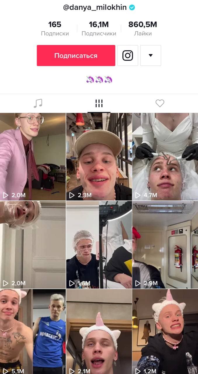 Сегодня в ТикТоке Милохина - 16,1 млн подписчиков, в его Инстаграмме - 3,6 млн.