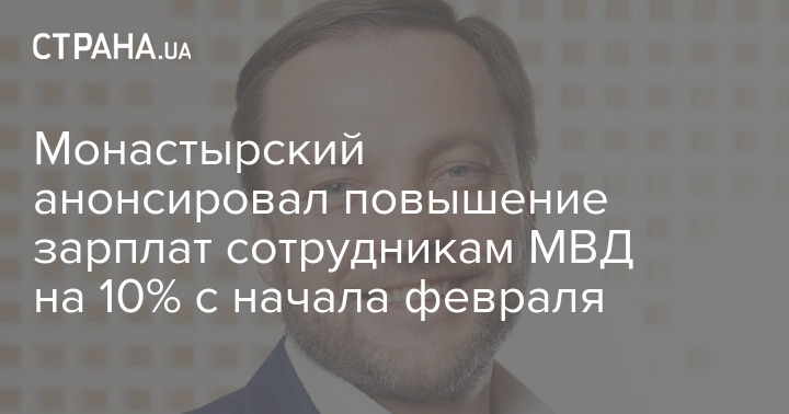 Монастырский заявил, что президент Украины Владимир Зеленский поручил повысить зарплаты всем работникам МВД на 10% со следующего месяца.