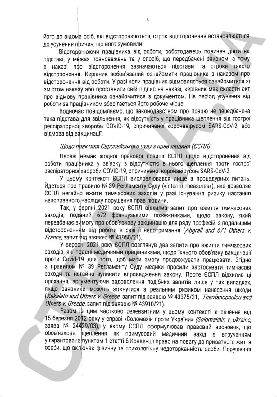 Эта методичка написана в ответ на запрос главы Николаевского апелляционного суда Николая Меняйло, который спрашивает у Кассационного гражданского суда, как применять статью 46 КЗОТа в части отстранения непривитых сотрудников учреждений и предприятий, включённых в перечень приказа МОЗ об обязательной вакцинации от ковид-19.