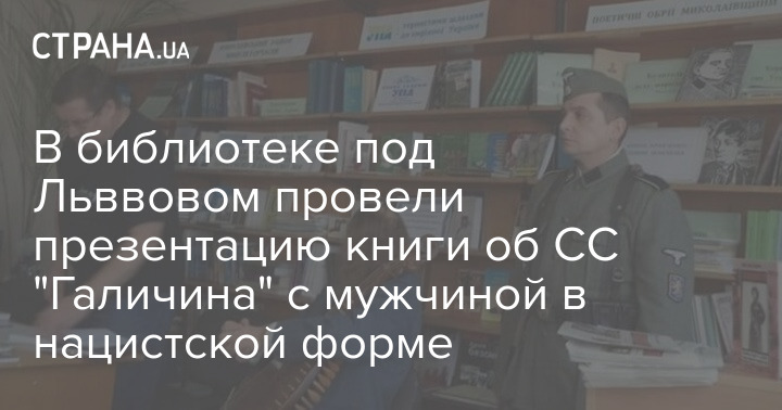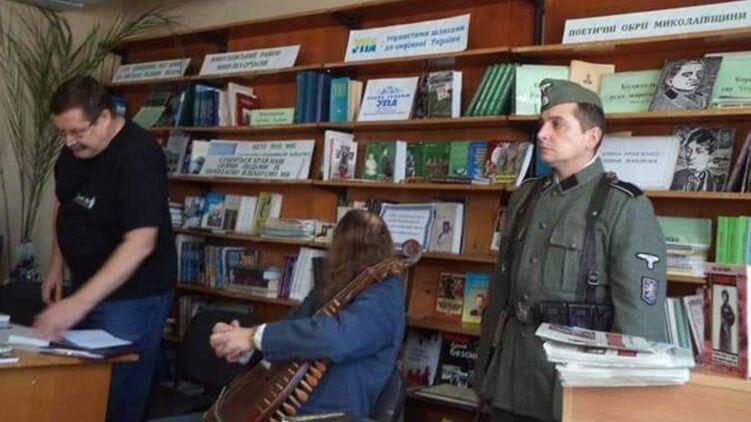 В одной из библиотек Николаева (Львовская область) провели презентацию книги, посвященной дивизии СС "Галичина". На мероприятии присутствовали бандурист и мужчина в нацистской форме.