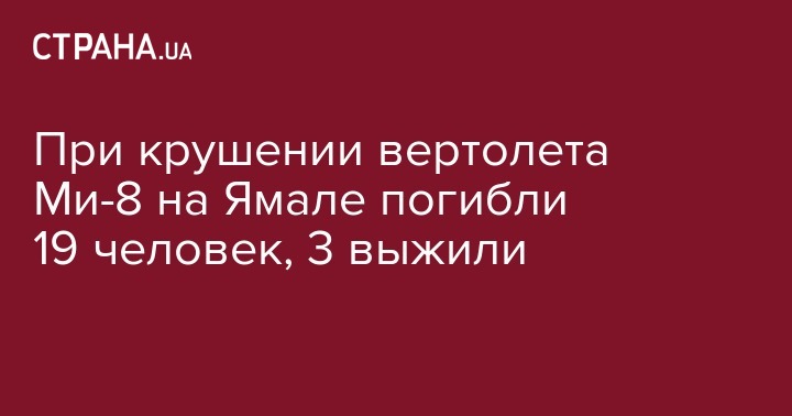 При крушении вертолета Ми-8 на Ямале погибли 19 человек, 3 выжили