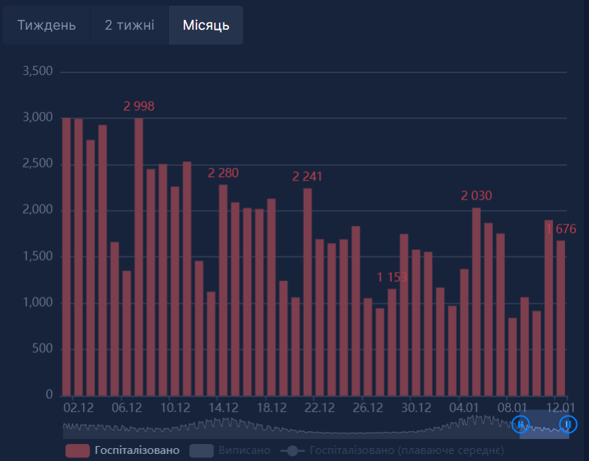 Немного иначе ведут себя госпитализации. В начале января они пошли в рост, потом уменьшились, а теперь снова растут. Но пока пиковые значения декабря не перекрыты.