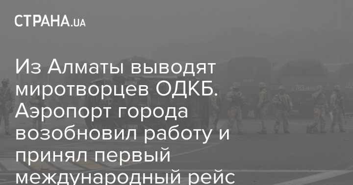 В Алматы 13 января состоялась торжественная церемония в честь вывода войск Организации договора коллективной безопасности (ОДКБ), который начался 12 января, на день раньше запланированного. Аэропорт города уже принял первый международный рейс после возобновления работы.