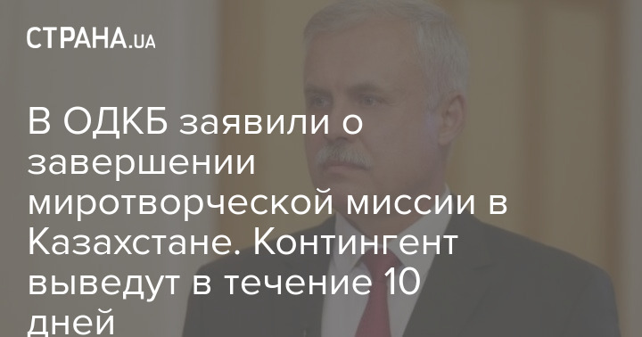 "Вывод коллективных миротворческих сил ОДКБ из Казахстана начался уже сегодня, 13 января текущего года, и будет продолжаться в течение 10 дней. Миротворческая миссия ОДКБ в республике завершена. Это согласованная оценка как политического руководства государств-членов ОДКБ, так и военного командования КМС ОДКБ и казахстанских Вооруженных сил", - сказал Зась.