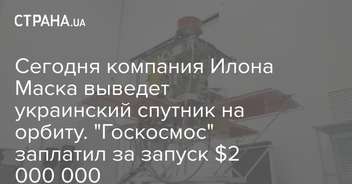 Сегодня компания Илона Маска выведет украинский спутник на орбиту. "Госкосмос" заплатил за запуск $2 000 000