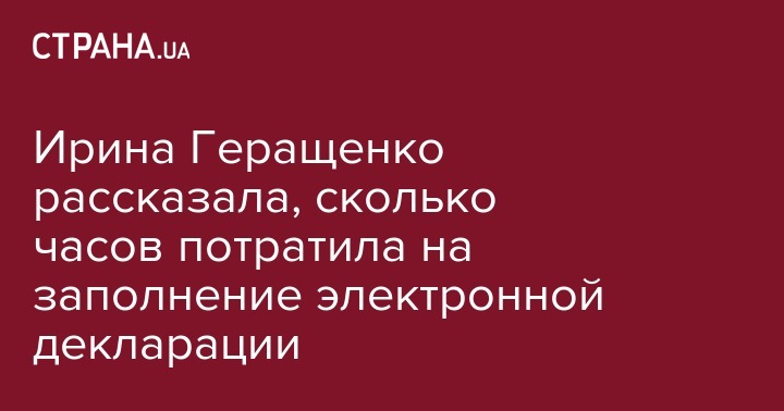 Первый заместитель председателя Верховной Рады Ирина Геращенко на своей странице в социальной сети Facebook рассказала, сколько времени у нее ушло на то, чтобы заполнить электронную декларацию на Едином госреестре деклараций.