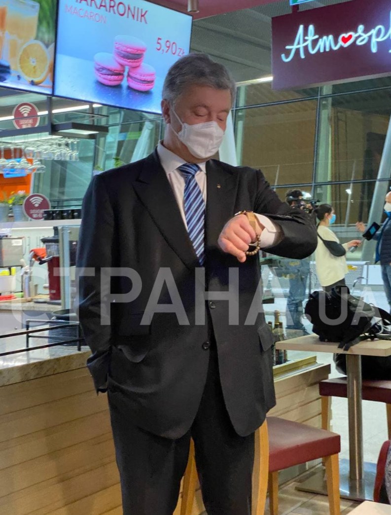 06:59 Порошенко со свитой зашли в кофейню варшавского аэропорта. Экс-президент не выпускает из рук четки.
