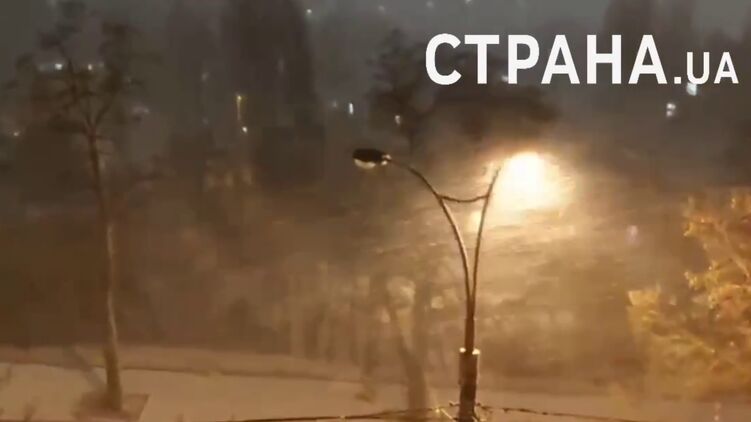 В Украине сильный ветер и снег, на улицах украинской столицы - настоящая пурга.