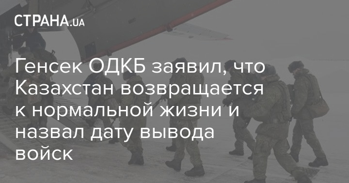 "Практически в течение недели все подразделения, весь личный состав будет выведен в пункты постоянной дислокации. И, если погода не вмешается, то по плану Министерства обороны России до 19 января включительно спланировано всех вернуть в пункты постоянной дислокации", - сказал генеральный секретарь ОДКБ.
