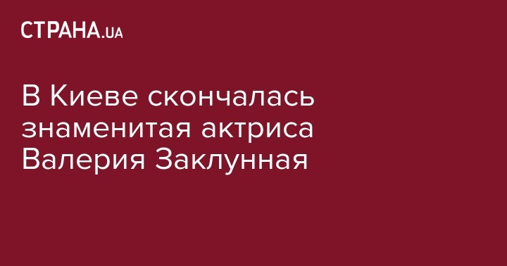 "В Театр им. Леси Украинки вновь пришла беда. Ушла из жизни великая актриса, проработавшая на наших подмостках более 50 лет - Валерия Гавриловна Заклунная", - говорится в сообщении.