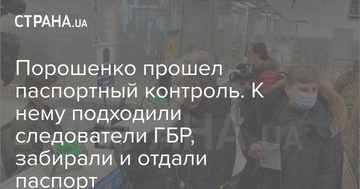 Порошенко подошел на паспортный контроль, где некоторое время ему не отдавали паспорт. Паспорт забрали следователи ГБР, как заявили в бюро - для проверки. Однако через некоторое время документ вернули и экс-президент вышел из аэропорта, его никто не задерживал.