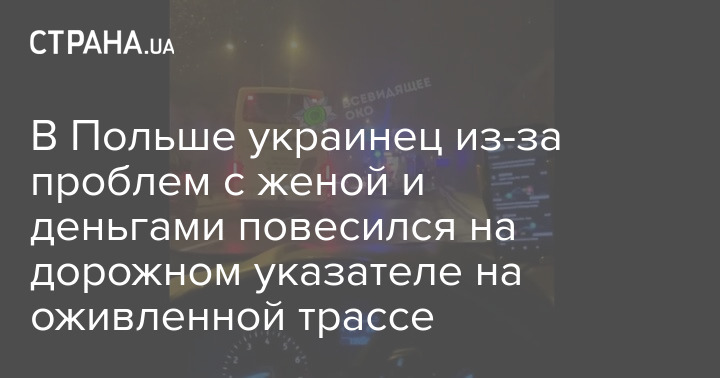 В Польше украинец из-за проблем с женой и деньгами повесился на дорожном указателе на оживленной трассе