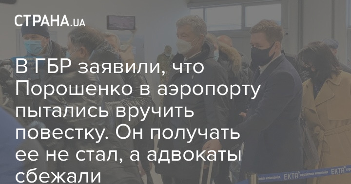 В ГБР заявили, что Порошенко в аэропорту пытались вручить повестку. Он получать ее не стал, а адвокаты сбежали