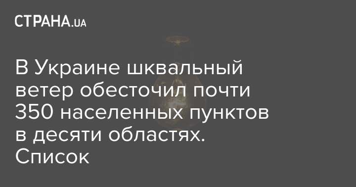 В Украине шквальный ветер обесточил почти 350 населенных пунктов в десяти областях. Список