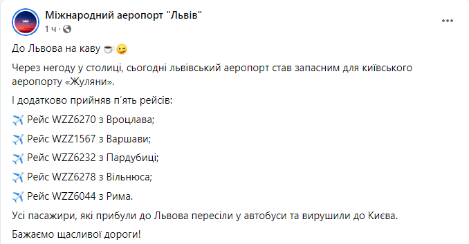 Об этом сообщает пресс-служба международного аэропорта "Львов" в Facebook.