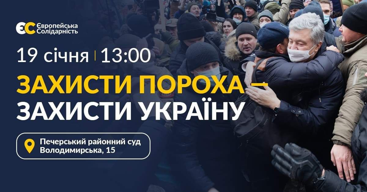 Политическая партия "Европейская солидарность", главой которой является недавно вернувшийся в Украину экс-президент страны Петр Порошенко, в соцсетях созывает всех завтра на акцию под Печерский суд. Ее начало - в 13:00.
