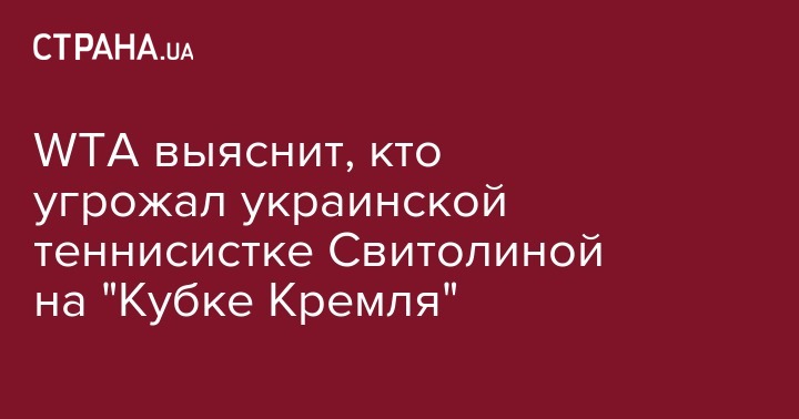 Всемирная ассоциация женского профессионального тенниса (WTA) проведет расследование по факту полученных первой ракеткой Украины Элиной Свитолиной угроз в Москве. Об этом сообщил российский журналист Дмитрий Шахов, который специализируется на освещении тенниса, передает Чемпион.