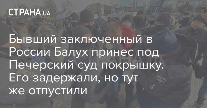 В среду, 19 января, правоохранители под Печерским судом изъяли покрышку у бывшего заключенного в России Владимира Балуха, который пришел на митинг сторонников Порошенко.