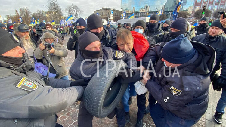 Балух оказывал сопротивление правоохранителям и не отдавал им покрышку. В результате его задержали, но потом отпустили. Его забрал народный депутат от "Евросолидарности" Владимир Вятрович.
