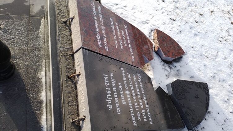 "Лисичанская городская военно-гражданская администрация сообщает, что памятный знак жертвам еврейского населения, погибшим в городе Лисичанск во время Второй мировой войны, расположенный на городском кладбище "Зеленая роща", был снова разрушен", - сказано в сообщении.