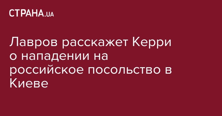 Глава МИД России Сергей Лавров заявил, что в ходе телефонного разговора с госсекретарем США Джоном Керри обсудит с ним нападение на российское посольство в Киеве. Об этом он заявил в интервью телеканалу РЕН-ТВ.