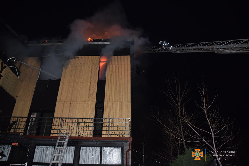 В Николаеве ночью горел ресторан. Спасатели тушили пожар два часа. Фото
