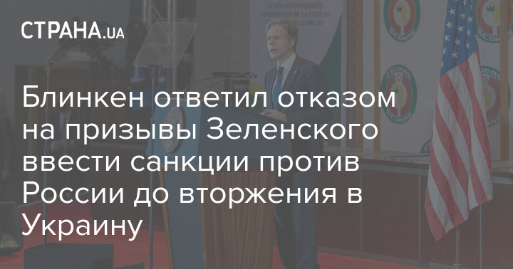 Блинкен ответил отказом на призывы Зеленского ввести санкции против России до вторжения в Украину