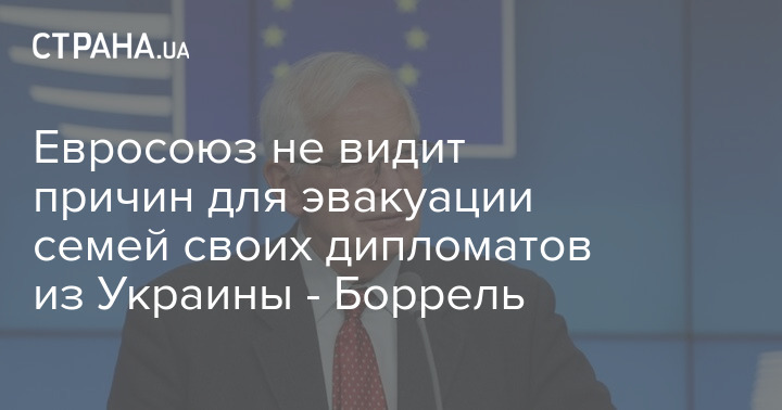 Евросоюз не видит причин для эвакуации семей своих дипломатов из Украины, заявил верховный представитель ЕС по иностранным делам и политике безопасности Жозеп Боррель. По его словам, Евросоюз ожидает пояснений от США после того, как Госдеп разрешил американским дипломатам покинуть Украину и приказал уехать членам их семей