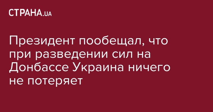 Президент пообещал, что при разведении сил на Донбассе Украина ничего не потеряет