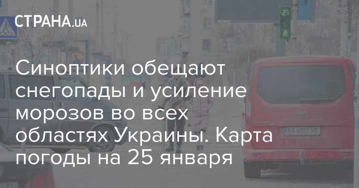Синоптики обещают снегопады и усиление морозов во всех областях Украины. Карта погоды на 25 января